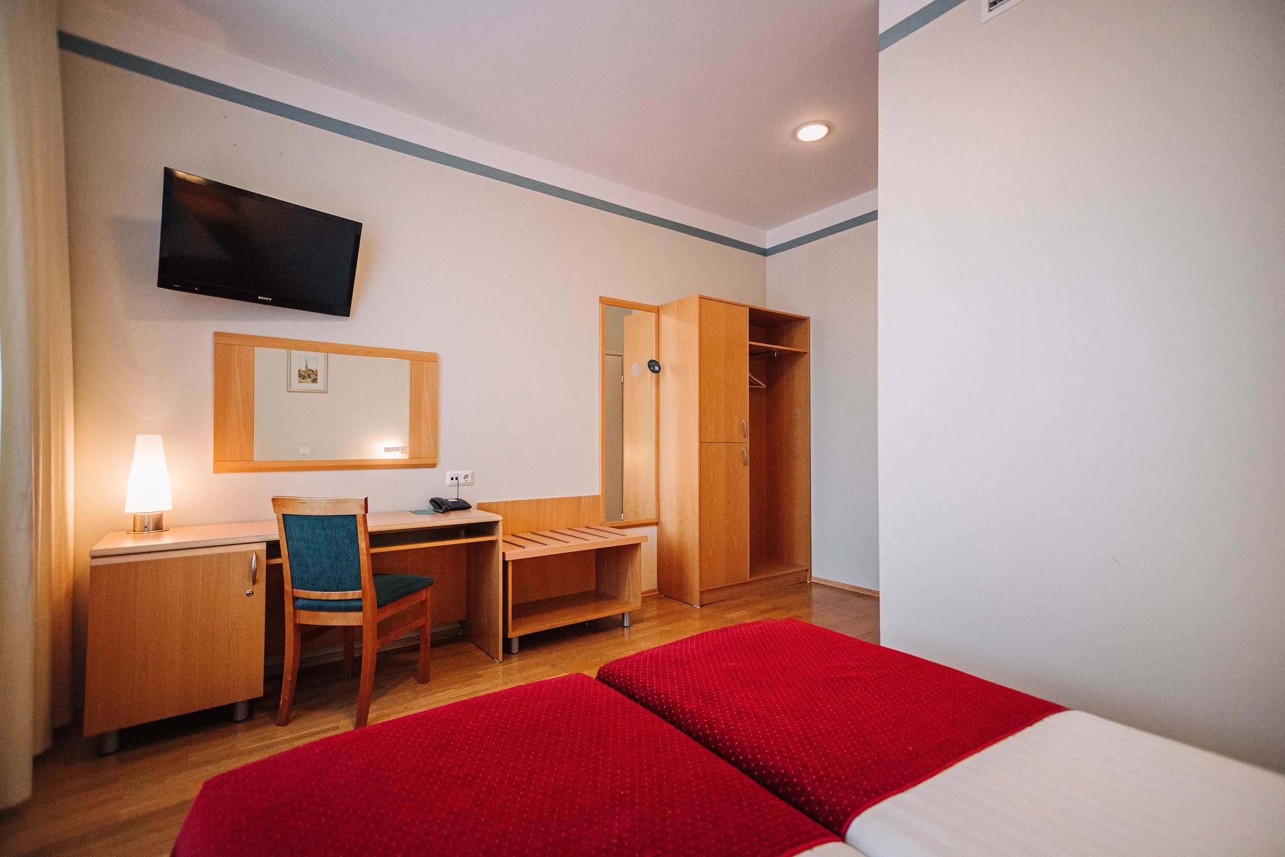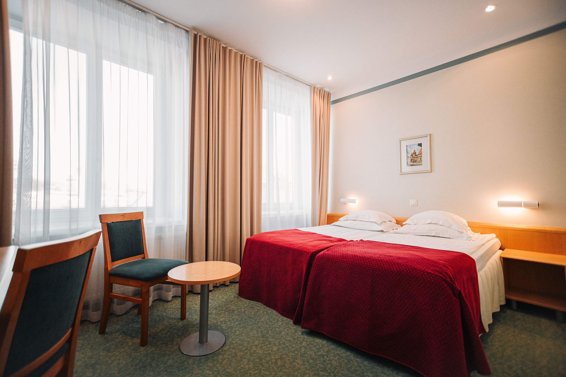 Полностью оборудованный номер для комфортного проживания в самом сердце Старого Таллина. Номер с телевизором, бесплатным Wi-Fi, телефоном, удобная двуспальная кровать или две раздельные кровати, рабочей зоной с письменным столом и ванной комнатой с душем. Из некоторых номеров открывается прекрасный вид на Старый Таллинн. Приблизительная ​площадь – 19 м2.